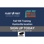 | 2024 Fleet Feet 10k Training (Huntsville)Next Steps is perfect for runners who desire to improve their 10k times, complete their first 10k, and increase their knowledge and love of running. A variety of training techniques will be incorporated in this 10-week program to help improve your speed, strength, and running economy. Your coach and mentors will work to carefully balance mileage...